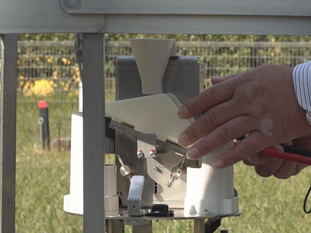 夏用の雨量計から、ヒーター付きの冬用へ交換です。