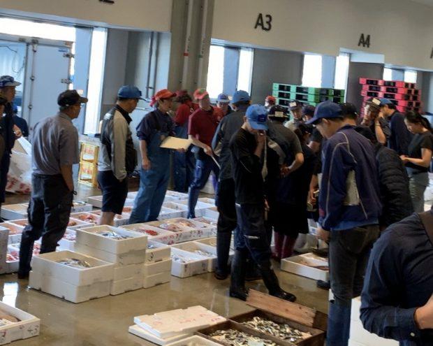 魚の競りが行われている現場。
