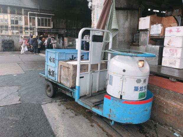 場内でよく見かけた乗り物は「ターレー」と呼ばれるもの。