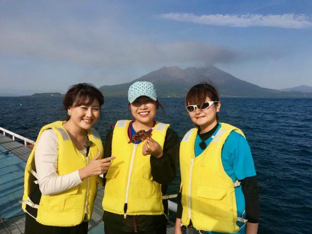桜島の宮元さんご夫婦が営む「あけみ丸」に乗って