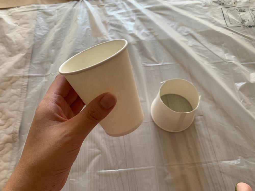 前回、紙コップに塗料を入れ作業をした時、