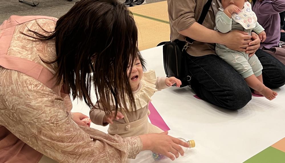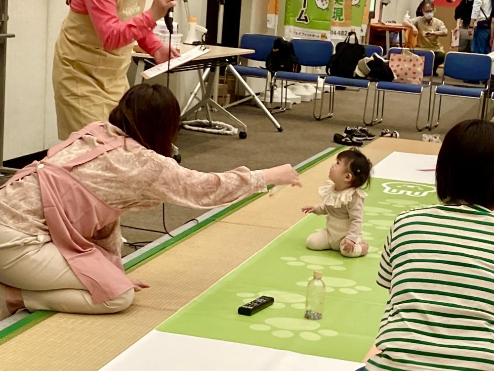 娘 大好物のリモコン、ガラガラ、お菓子に先導してもらい