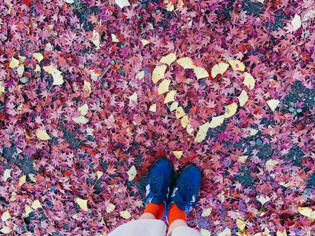 ハートに並べたイチョウと一緒にパチリ♥︎