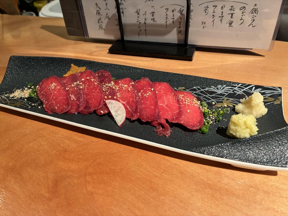 『辛子蓮根に馬刺し』