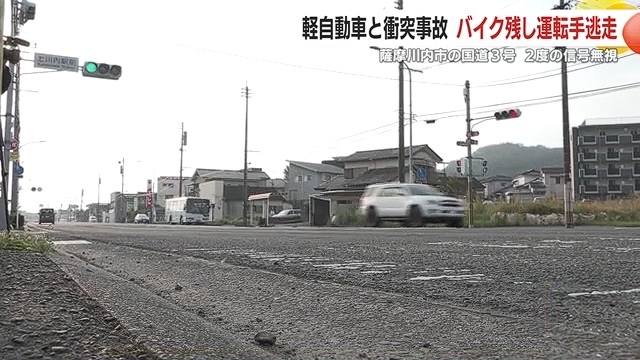 警察によりますと、16日午後10時ごろ、薩摩川内市御陵下町の国道3号線でバイクが信号無視をして交差点を直進しました。