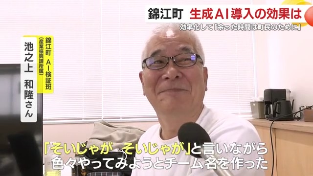 錦江町役場の職員数はこの20年で60人ほど減少しているが、産業振興課所属でAI検証班の池之上和隆さんは「業務量はなかなか減らない。AIを使って効率化して、もっと少ない人数ですませることもあるのではないか」と話す。
