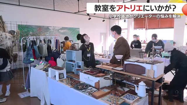 錦江町の閉校した小学校で開催されたのは「海との暮らし、あおのクラフトマルシェ」。今回で2回目となる町主催のこのイベント、普段はインターネット上でハンドクラフト作品を販売しているクリエーターたちが集まり、直接作品を販売した。
