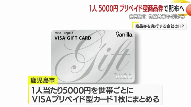 鹿児島市、全世帯に「1人5000円」配布へ VISAプリペイドカードで2026年4月発送予定
