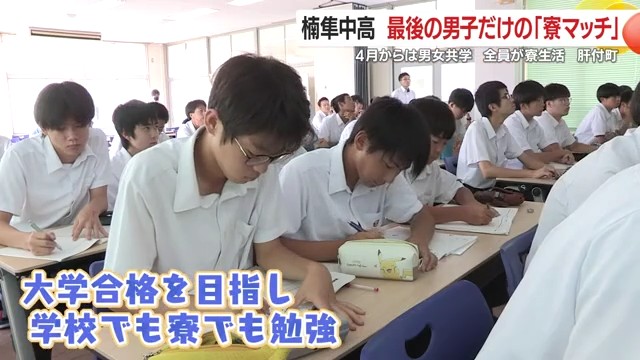 楠隼中学・高校は、公立では全国初となる全寮制の中高一貫教育男子校として2015年に開校した。生徒たちは大学合格を目指し、学校でも寮でも勉強漬けの日々を送っている。