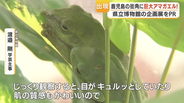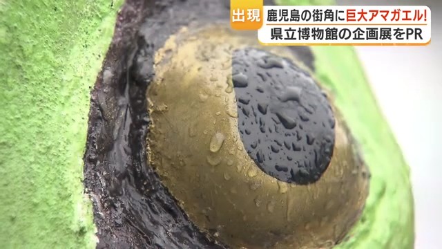 鹿児島市の県立博物館に、通行人の視線を釘付けにする大きな訪問者が現れた。看板にどっしりと張り付いた体長1メートルの「アマガエル」。実はこれ、博物館職員が約3カ月かけて手作りした渾身のオブジェだ。「すごいびっくりしましたし、ちょっとかわいい」「シュールですね」と、思わず足を止めた通行人からそんな声が上がった。