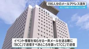 10月27日、業務委託先の職員が会員登録者に向けてイベント情報を知らせる一斉メールを送る際、本来は、受信者同士のアドレスが見えない「BCC」で送信すべきところを誤ってほかの受信者にもアドレスが表示される「CC」で送信したということです。