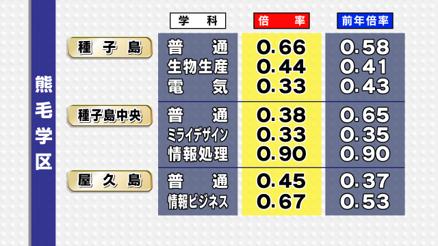 2026年度 鹿児島県公立高校 出願倍率を掲載致します。(2月13日 県発表)