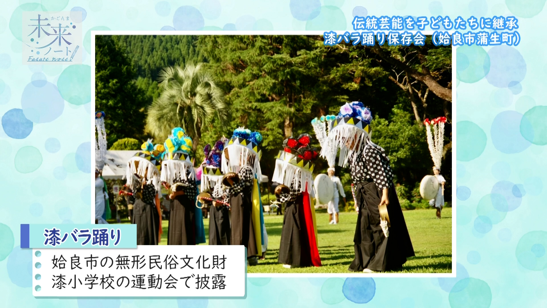 姶良市蒲生の伝統芸能「漆(うるし)バラ踊り」の練習風景です。