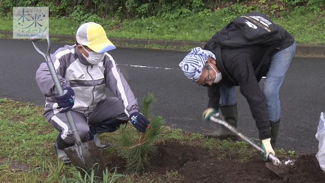 この日は、1.3キロにわたり、70本もの松の苗木を植えることにしました。