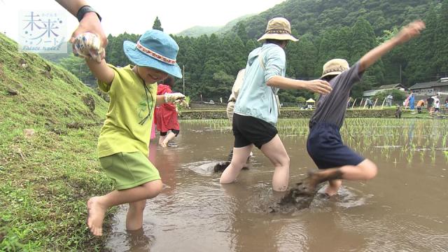 慣れない田んぼに戸惑う、子どもや大人の姿がありました。