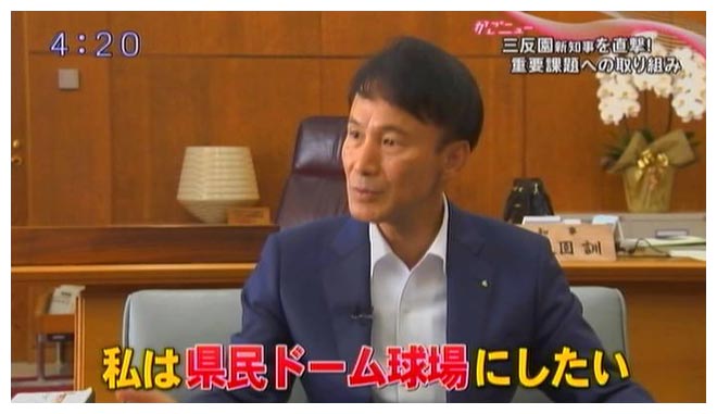 プロ野球を呼び、子供達に一流のものを見せたい為にドーム球場を作りたい。それぐらいのスタジアムが有ると一流のミュージシャンも来てくれるし、ドームは目立つので鹿児島が変わっと言う雰囲気になる。広島市民球場が市民寄付を募ったように、県民ドーム球場にしたい。県民とともに鹿児島が変わると言う象徴にしたい。サッカー場もスタジアムを整備しないといけない。