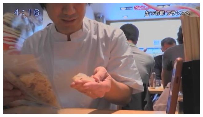 現在パリでは、中国や韓国で作られたかつお節が先に流通いるのが現状です。魚のニオイがきつかったり、ふわりとしたモノではなく、すぐに乾燥してパリパリしてしまい、とてもかつお節と呼ぶには厳しいものも、それを使わざるを得ない現状があります。