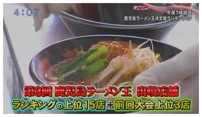 「第3回鹿児島ラーメン王決定戦2万9千人が選んだランキング大発表SP」12月6日よる7時~