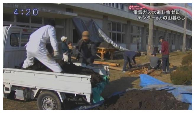 この日はドラム缶を使ったトイレ作りです。ドラム缶の中には、おが屑を入れます。これが糞尿と混ざり合い発酵すると、畑づくりには欠かせない堆肥となるのです。溜めておくだけでもいいのですが、そこに一工夫。回転させることで、より早く堆肥を作る仕組みを考えました。