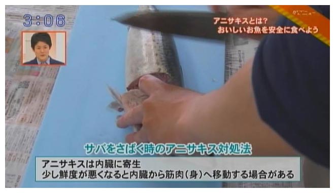 生魚を食べた後に、胃がいたくなる症例でアニサキスという線虫と分かるようになったのは、胃の内視鏡検査ができるようになってから。1960年以降アニサキス症っていう名前がつきました。昔、青魚にあたったって言う事!それがアニサキスという寄生虫が原因だったんです。