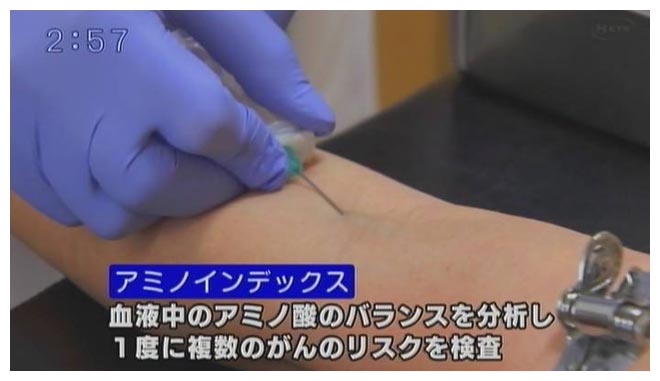 血液の成分の数値や、抗体を調べることで、特定のガンにかかっていないか、そのリスクを調べることもできます。また、アミノインデックスという血液中のアミノ酸のバランスで複数のガンのリスクを調べる検査もあります。これを利用して、男性は5つ、女性は7つのがんについて、