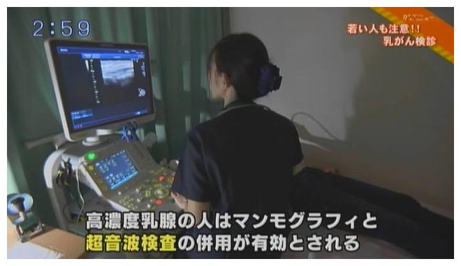 先日フリーアナウンサーの小林真央さんも乳がんで命を落としました。乳がんは専門の検診で早期発見ができます。今回、女性スタッフに受けてもらいました。代表的な乳がん検診はマンモグラフィーと呼ばれる検査です。アクリル板で乳房をはさみ、X線で撮影します。白くかたまって見えるのが腫瘍になります。ただ高濃度乳腺と呼ばれる人はマンモグラフィーで乳がんを見分けるのが難しいんです。そこで高濃度乳腺の人にはマンモグラフィーと併せて超音波検査を行うと良いと言われています。超音波検査では、しこりやがんは黒く写り、乳腺は白く見えるのでしこりと乳腺を見分けやすいそうです。乳がん検診というと「痛い」というイメージが強いかもしれませんが、少しでも痛くないようで、機械も進化しているそうです。検査を受けることが、早期発見につながる乳がん。みなさん是非受診して下さい。