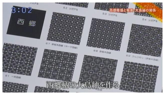 西郷さんを思い続けた奄美の人たちは、やがて「西郷柄」と呼ばれる大島紬を作りました。感謝の思いでした。