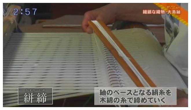 1960年。職人達が絣しめなどを行う作業場として、「大島紬締機センター」が作られました。昔は活気に満ちあふれていたそうですが、時代とともに衰退し、締め機の数も、職人の数も減りました。そんな現状をなんとかしたいと、この平成西郷星に思いを込めています。バトンは、いよいよ奄美の職人へと渡ります。