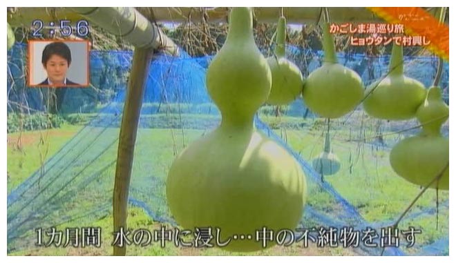 リポーターのタマリが温泉と人との出会いを求めて歩く「かごしま湯巡り旅」。今回は鹿児島市川田町の郡山温泉が舞台。周辺は花尾神社、隠れ念仏洞など歴史が見える中山間地。棚田の広がる大平集落で村人に遭遇、案内された所は豊作を迎えた“ヒョウタン畑”。ミニヒョウタンから20㎏もある巨大ヒョウタンに仰天!