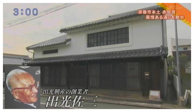 大島から再び宗像本土に戻って、やってきたのは赤間宿です。赤間宿は参勤交代の大名行列が通る唐津街道の宿場町として栄えました。今も、風情ある街並みが残っています。作家百田直樹の『海賊と呼ばれた男』のモデルとなった出光の創業者、出光佐三さんは宗像の赤間宿で生まれました。