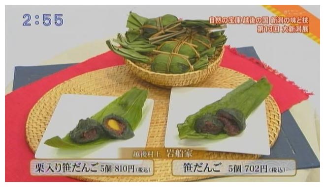 笹だんごは新潟では昔から春の節句などで食べられるという、伝統的な和菓子です。『越後村上』では会場で職人の方が作っているので、出来たての笹だんごを購入出来ます。ほっとする甘さの笹だんごはお土産に好評だそうです。