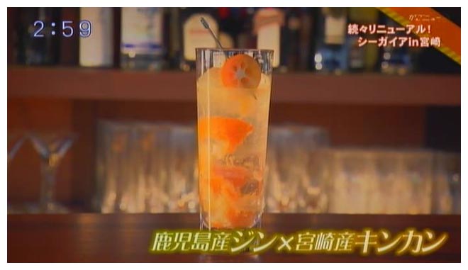 また『リビングガーデン』には、宿泊者限定の『KUROBAR』が、夜のとばりに包まれてからオープンします。鹿児島産ジン×宮崎産キンカンで作られたカクテルを頂きました。