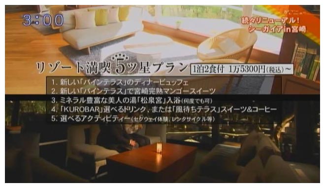 今週から、ガーデンビュッフェ『パインテラス』もリニューアルオープン!それを記念して、1泊2食付の『リゾート満喫5ッ星プラン』を実施中です。ディナーは国内5つのシェラトンシェフによる、宮崎牛と宮崎マンゴーなどのビュッフェ!そして、『風待ちテラス』か『KUROBAR』のどちらかを利用できます。その上セグウェイにも乗れるんです!
