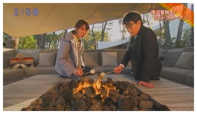 プールを臨む場所に宿泊者の為だけに2017年の秋、登場した『リビングガーデン』。中でも『焚火のリビング』では、あたたかい炎に当たりながらソファで寛ぐ事が出来ます。大人は勿論、子供も自然の空気を味わいながら心と体がポカポカになれます。