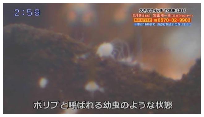 また、館内には不老不死のクラゲ「ベニクラゲ」も展示しています。ポリプという状態に自ら若返ると言う事です。