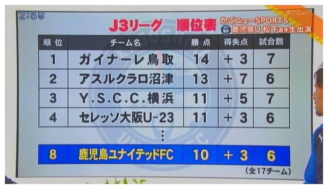 県内で活躍するアスリートをスタジオに招いて話を聞く新企画「かごニューSPORTS」。1回目のゲストはサッカーJ3鹿児島ユナイテッドFCの松下年宏選手。