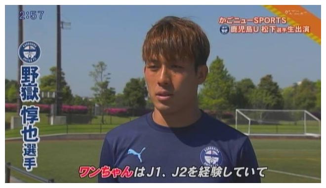 今回は松下選手のチームメートからもメッセージが届いています。ここまでチーム最多、3ゴールを挙げている鹿児島ユナイテッド フォワード野嶽淳也選手です。