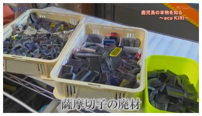 高価なものだと数百万は下らない薩摩切子。その制作過程で、どうしても生まれてしまう廃材があります。ただ捨てられるだけだった物に、再び光が当てらたのが「eco KIRI」です。