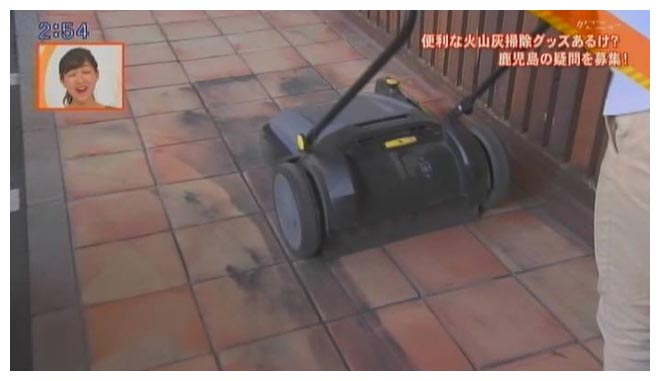 高圧洗浄機で有名なケルヒャー社が出している手押し式スイーパー。ブラシが回転することで地面の火山灰を吹き上げ、ゴミ箱がキャッチするという仕組み。ハンズマン宇宿店では実際に駐車場の掃除に使っていて、それを見てたお客さんがそれ良い!と買っていったこともあるそうです。
