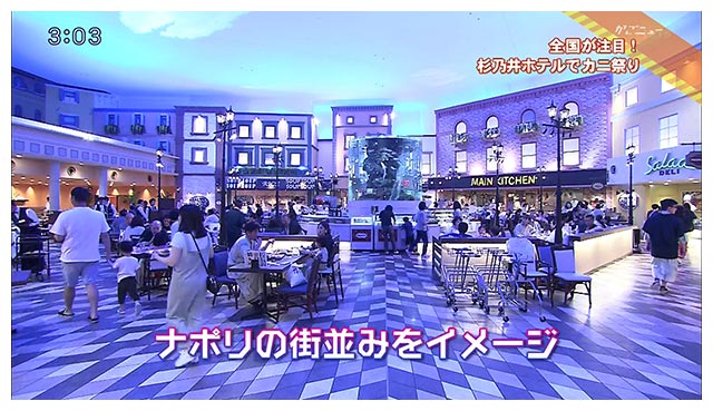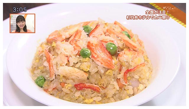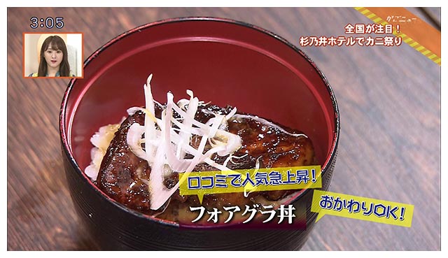 会場では洋食や中華をメインにした料理、およそ80品がバイキング形式で食べ放題!特に注目は7月18日までの期間限定カニ料理です!身がぎっしり詰まった焼きガニの他に、レストランの特長を生かした石窯焼きのカニピザや、カニの身たっぷりのパスタに、ふわふわタマゴのかに玉、パラパラごはんのカニチャーハン、カニのアヒージョなどまさにカニ尽くし!カニ料理だけでも10品ありました!そして、カニ以外でも、ひそかな人気を集めるのが、フォアグラ丼です。毎年恒例の「カニ祭り」はいつも大反響。平日もお客さんが一杯です!