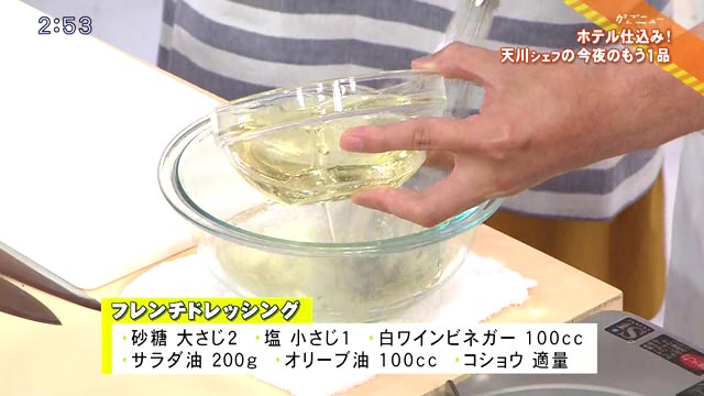② フレンチドレッシングの材料をボウルに入れ、混ぜ合わせる