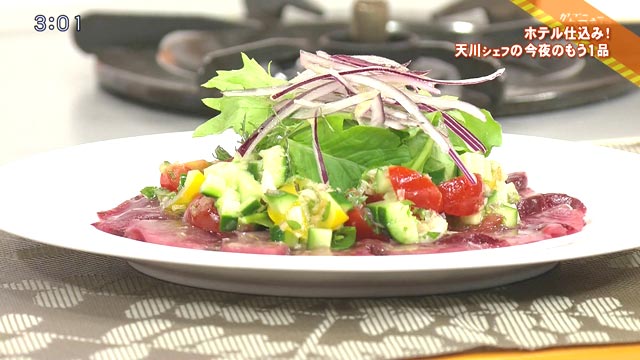 今回のメニューは「カツオのカルパッチョと夏野菜のマリネ サラダ仕立て」。今すぐ作りたくなる超簡単レシピをご紹介します!