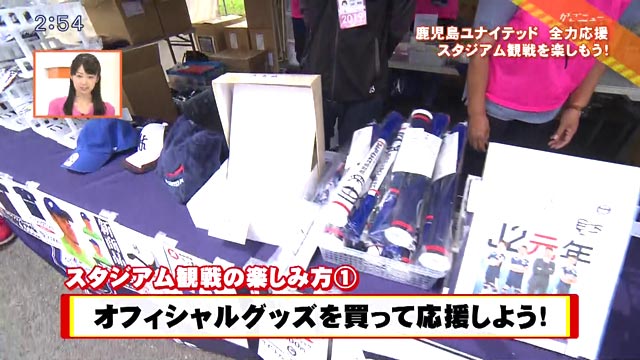 チームのオフィシャルチアリーダー「ネイビースターズ」の2人に紹介してもらいました。まず向かったのは、チームのオフィシャルグッズ売り場!タオルやメガホン、ぬいぐるみなど様々なユナイテッドグッズがそろいます。これからの梅雨の時期にぴったりなのがポンチョ。雨の日も安心です。スタグルも魅力の一つですが、特に暑い日にもぴったりなのがかき氷!中でもここでしか食べられないメニューが、鹿児島ユナイテッドFCのカラーと対戦チームのカラーのシロップがかかった必勝かき氷です。