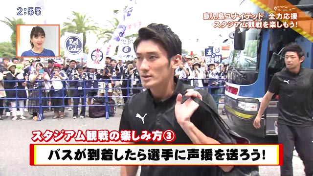 試合開始2時間前には選手をのせたバスがスタジアムに到着します。選手たちを間近で見れるチャンス、熱い声援を送りましょう!