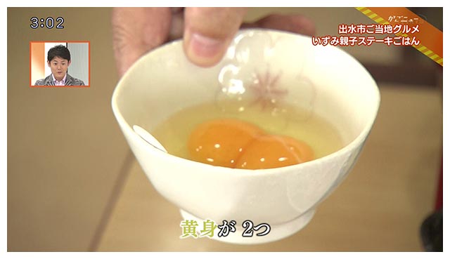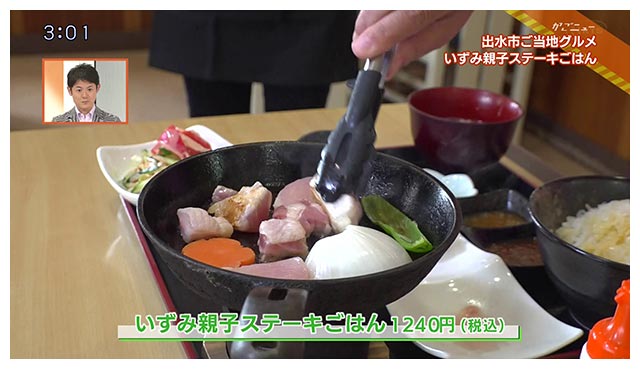 地元客はもちろん、外国の観光客も多く訪れるハンバーグのお店です。この「いずみ親子ステーキごはん」は、出水市内の4つのお店でご当地グルメとして展開中です。ここ出水は2011年に鶏卵生産が全国2位だったんです!