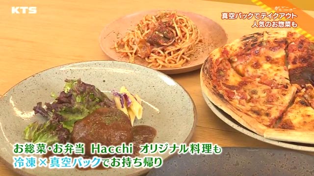 鹿屋市にある「Hacchi」でテイクアウトできるのは、かんぱちのカルパッチョ!独自の熟成技術・デキャンタージュ製法を使ったカンパチは食感が劇的に変わり、特製ダレと絡めることでうまみ成分がぐんと増すんだそう。6分程流水解凍をするだけで、簡単に食べることができます。他の料理も急速冷凍された状態でお持ち帰りできます。