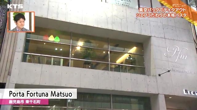 天文館の天神おつきやぴらもーる沿いにあるイタリアンレストラン、「ポルタ フォルトゥーナ マツオ」。イタリアで7年間修行したシェフの手がけるパスタを家で楽しめる、「お家でポルタ」が人気です。パスタのソースは5種類から選べます。