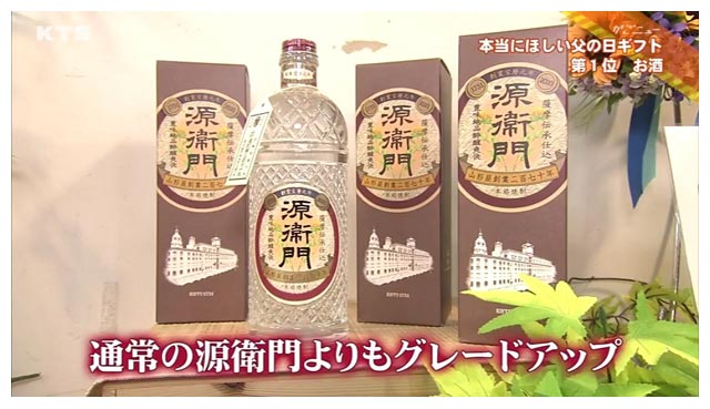 やっぱりかごんまのお父さんは、お酒好きが多いようです。100人中23人お酒に投票!「270年記念 源衛門」がおすすめです。もともと、源衛門(げんえもん)は、山形屋と薩摩酒造のコラボ商品で平成2年に誕生した本格焼酎。焼酎の名前は山形屋の創業者「源衛門さん」に由来しています。そして、今回山形屋創業270年を記念して販売されたのが「270年記念 源衛門」。薩摩切子を想像させるボトルも華やかで、度数も35度と、普通の焼酎より高いんです。9年貯蔵の麦焼酎と30年貯蔵の芋焼酎がブレンドされ、やわらかさ・まろやかさ・はなやかさが楽しめます。この他にも、父の日の贈り物にピッタリのメッセージ入りのものや珍しいお酒も豊富に取り揃えられています。