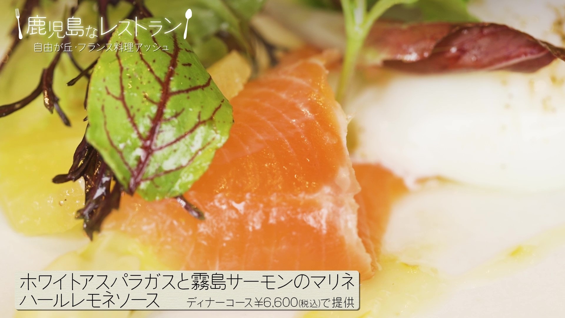 ホワイトアスパラガスと霧島サーモンのマリネハールレモネソース