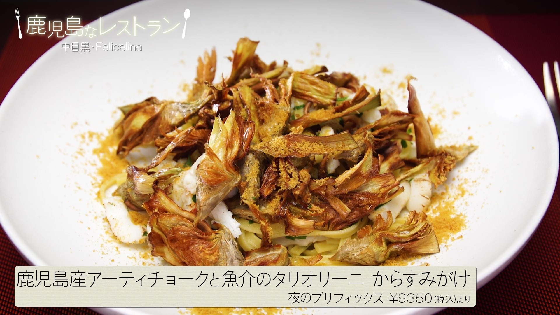 鹿児島産アーティチョークと魚介のタリオリーニ からすみがけ